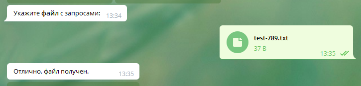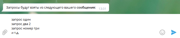 Категории, как и запросы, можно передать прямо в сообщении или файлом в формате txt или csv.